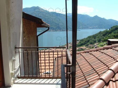 Porzione di casa nel centro storico del paese con vista lago composta da locali rustici al piano terra e seminterrato più appartamento di 3 locali, servizi e balcone al primo piano. L'appartamento è riscaldato con il camino, le finestre originali sono già